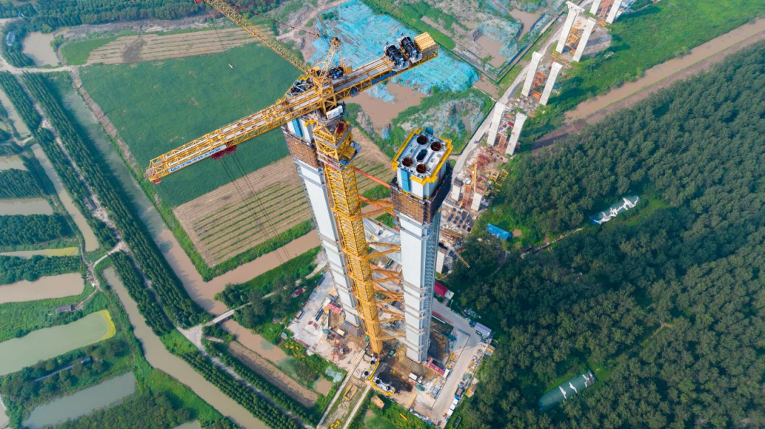 (崇启长江公铁大桥加快建设 摄影:崔永兴)